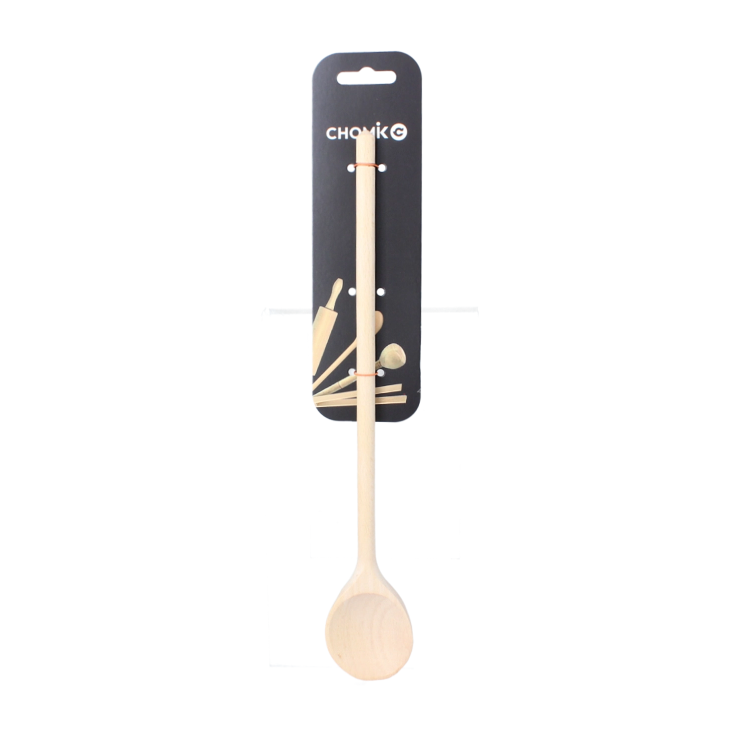 Deze ronde houten lepel van beukenhout is een onmisbare hulp voor dagelijks koken. Het natuurlijke materiaal is vriendelijk voor pannen met antiaanbaklaag, zodat krassen worden voorkomen. Dankzij de stevigheid van beuken kunt u rekenen op een lange levensduur en comfortabel gebruik.