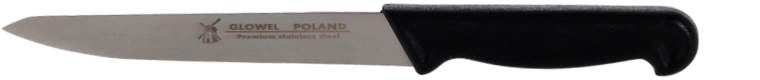 Universeel keukenmes GLOWEL met een lemmet van 15 cm van hoogwaardig roestvrij staal X50CrMoV15 biedt langdurige scherpte, hoge corrosiebestendigheid en comfortabele, veilige bediening dankzij het ergonomische kunststof handvat. Geschikt voor het snijden van vlees, groenten en fruit en vaatwasserbestendig voor eenvoudig onderhoud.