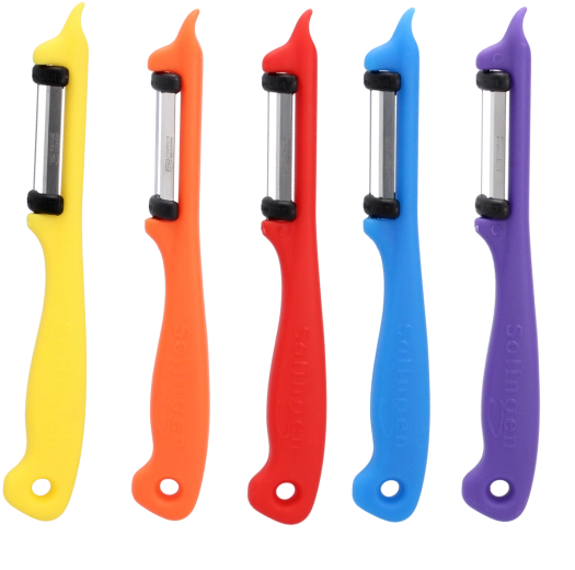 Ontdek een betrouwbare schiller die de maaltijdvoorbereiding versnelt en het dagelijkse koken aangenamer maakt. Dankzij de bewegende, dubbelzijdige messen van roestvrij staal SOLINGEN kan hij zowel dunne als dikkere schillen aan en laat hij een glad oppervlak achter zonder onnodig verlies van product. De ergonomische handgreep van polypropyleen biedt een zekere en comfortabele grip, ook bij langer gebruik.
