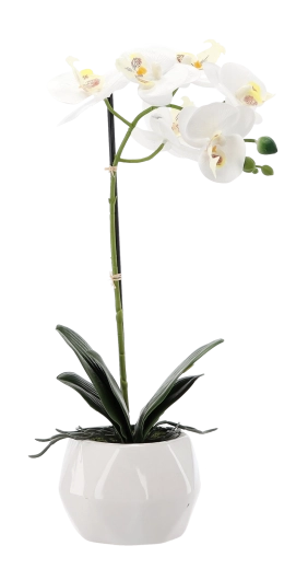 Dit veelzijdige decor is ideaal voor de woonkamer, slaapkamer, receptie en commerciële ruimtes. Dankzij de blijvende uitstraling zonder water geven geniet je het hele jaar door van de schoonheid van de orchidee – zonder vallende bloemen en zonder zorgen.