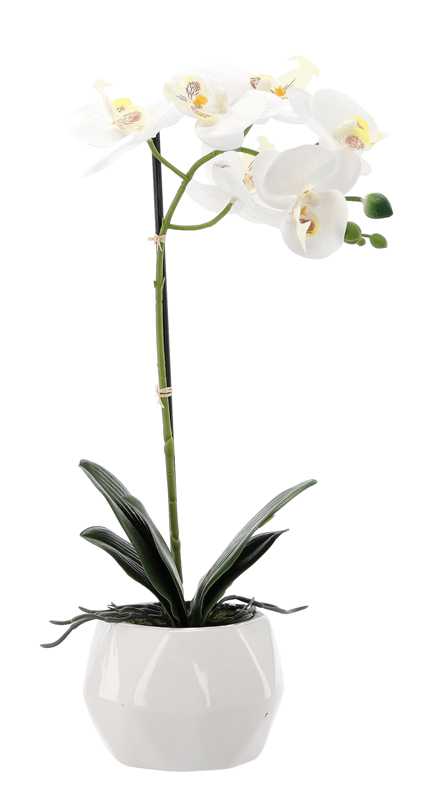 Breng een vleugje elegantie in je huis of kantoor met een orchidee die eruitziet als echt en geen enkel onderhoud vereist. Realistische details van bloemen en bladeren zorgen voor een natuurlijke look, terwijl de witte bloempot de moderne stijl benadrukt en moeiteloos in elk interieur past.