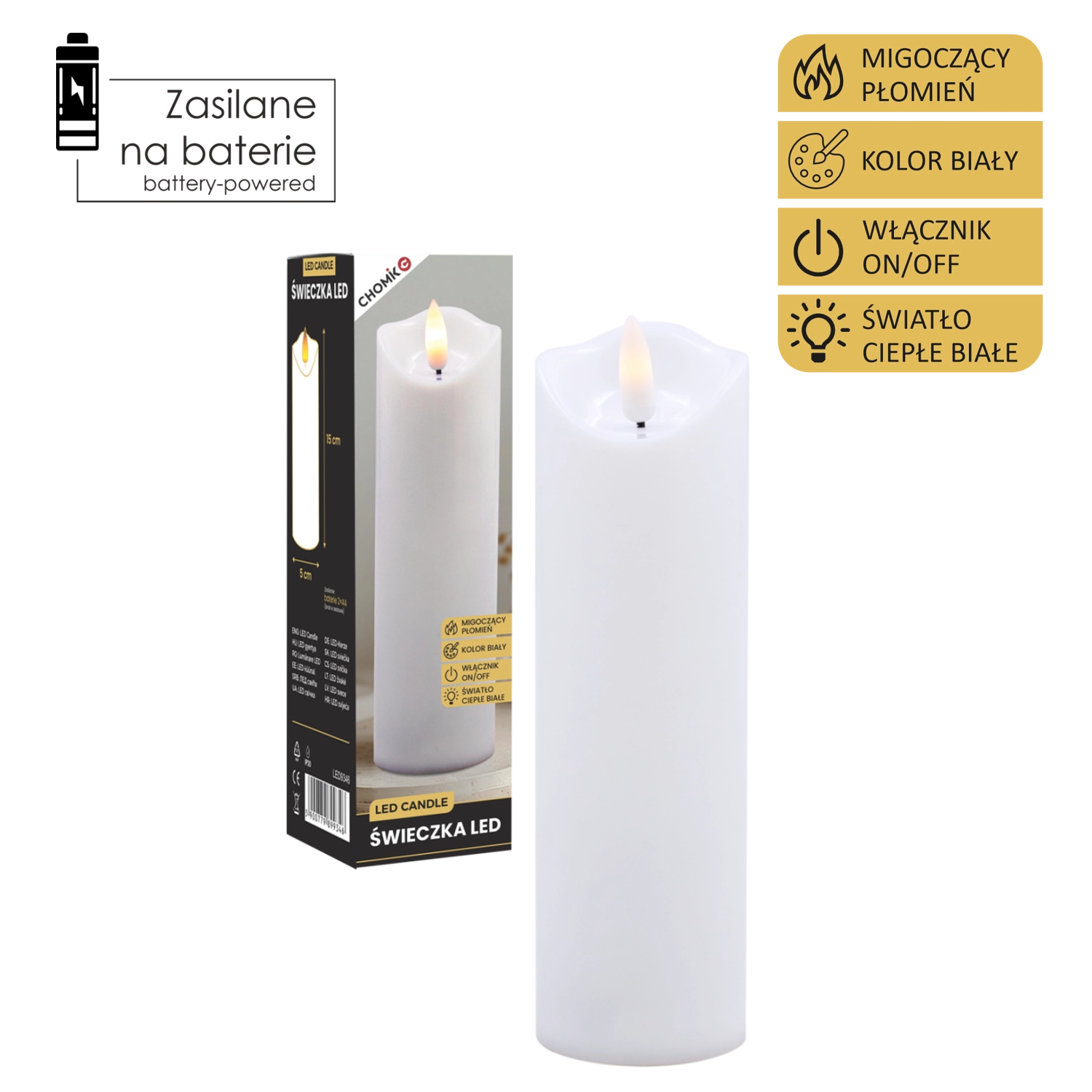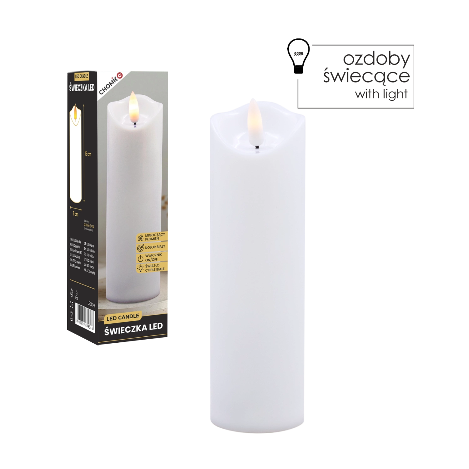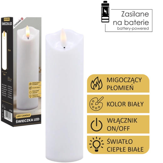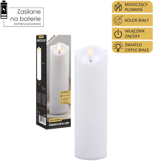 Deze realistische LED-kaars in het wit biedt het effect van zacht flikkerend warm licht dat een vlam natuurgetrouw nabootst zonder het risico van open vuur. Ideaal voor thuisdecoratie, feesttafels, ontspannende avonden of als veilig alternatief in huishoudens met kinderen en huisdieren.