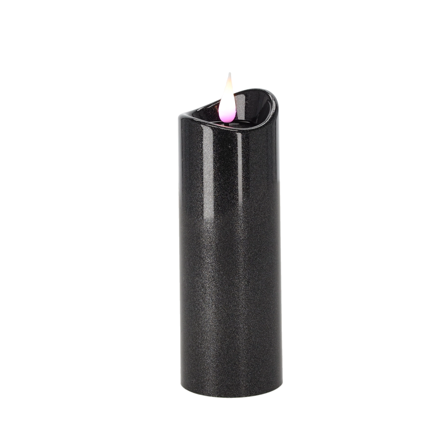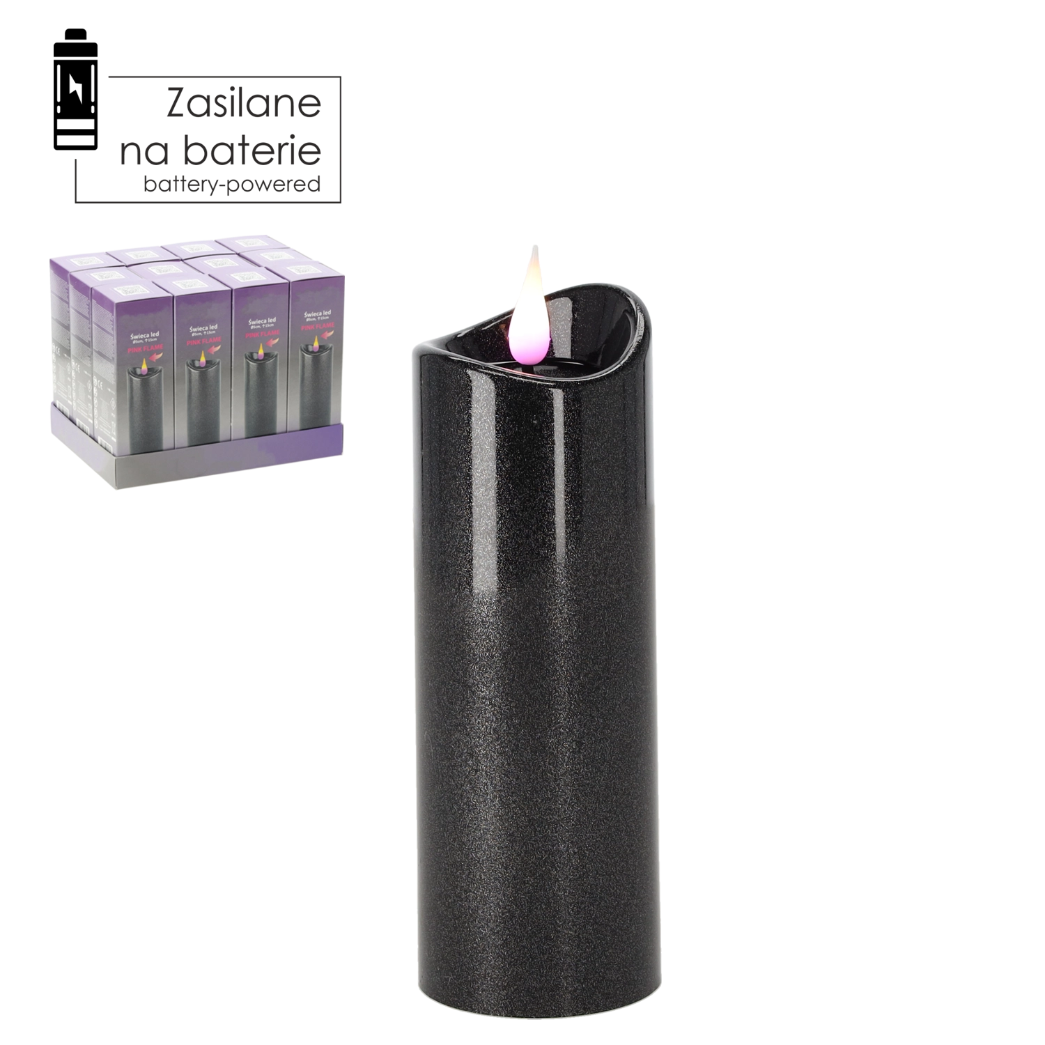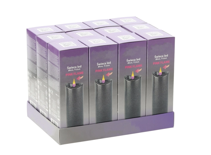 Elegante LED-kaars in granietkleur met afmetingen 5 × 15 cm en effect van een roze vlam. Dankzij batterijvoeding is ze veilig, langdurig en geschikt voor interieur en buitendecoratie, bijvoorbeeld voor graven of gedenkplaatsen. Batterijen zijn inbegrepen.