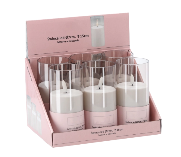 Elegante LED-kaars in een buis met een hoogte van 15 cm en een diameter van 7 cm biedt veilig en onderhoudsvrij licht voor decoratie binnen en buiten. Dankzij de LED-technologie is ze zuinig, gaat ze lang mee en is ze veilig zonder open vlam – ideaal voor thuis, feestelijk tafelen en als grafdecoratie.