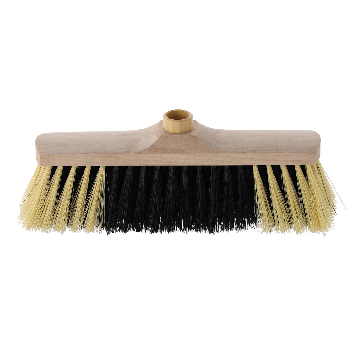 Praktische houten veegborstel met een breedte van 26 cm voor het snel schoonmaken van gangen, terrassen en garages. Biedt een stevige houten constructie, slijtvaste synthetische haren en compatibiliteit met gangbare stelen met een diameter van ca. 22 mm voor eenvoudige hantering.