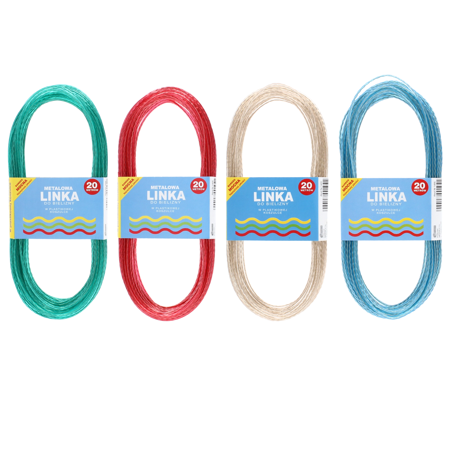 Duurzame waslijn van 20 m voor gebruik binnen en buiten. Dankzij de stalen kern en de PVC-coating biedt hij hoge sterkte, weerbestendigheid en minimale rek voor veilig drogen, ook van zwaarder wasgoed.