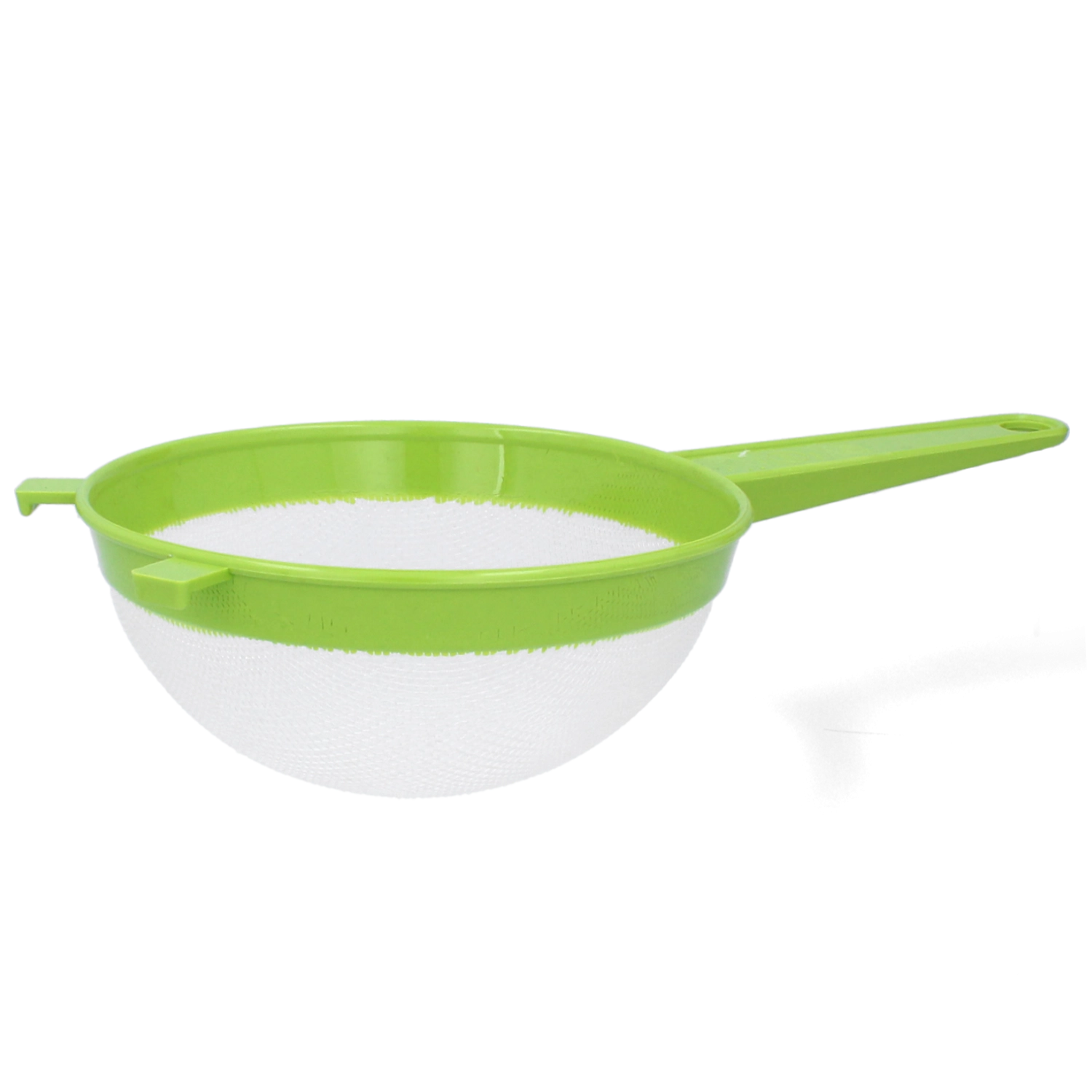 Praktische keukenzeef met een bolvormige kom met een diameter van 18 cm maakt de dagelijkse voedselbereiding eenvoudiger. Geschikt voor afspoelen van fruit en groenten, het zeven van meel en suiker en het uitgieten van vloeistoffen. Dankzij de ergonomische handgreep en stabiele haakjes bevestig je de zeef gemakkelijk op een pan of kom. De lichte en duurzame kunststof constructie is eenvoudig te onderhouden en het fijne gaas met mazen van ca. 1,3 mm zorgt voor effectieve scheiding van vaste deeltjes.