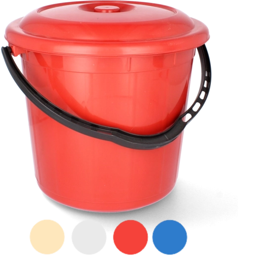 Praktische kunststof emmer met een inhoud van 10 liter en een afsluitend deksel, ideaal voor thuis, in de tuin en voor professioneel gebruik. Biedt bestendigheid tegen chemicaliën, betrouwbare bescherming tegen morsen en geurtjes en een lichtgewicht constructie met ergonomisch handvat voor comfortabel dragen.