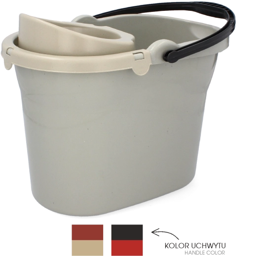 Praktische ovale emmer met een inhoud van 10 l voor het dagelijks schoonmaken. Beschikt over een geïntegreerd uitwringmechanisme voor snel verwijderen van water uit de mop, een ergonomisch handvat voor comfortabel dragen en een speciale schenktuit voor nauwkeurig en schoon uitschenken zonder morsen. Duurzaam plastic en een compacte vorm zorgen voor een lange levensduur en eenvoudig opbergen.
