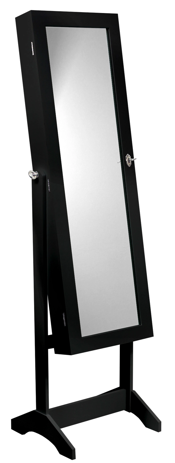 Deze zwarte sieradenkast met hoge staande spiegel is een uitstekende oplossing voor de slaapkamer of inloopkast. Er is volop ruimte voor oorbellen, kettingen, ringen en horloges, terwijl de volwaardige spiegel het kiezen van je outfit en het aanbrengen van make-up vergemakkelijkt. Het minimalistische ontwerp past moeiteloos bij een modern interieur.