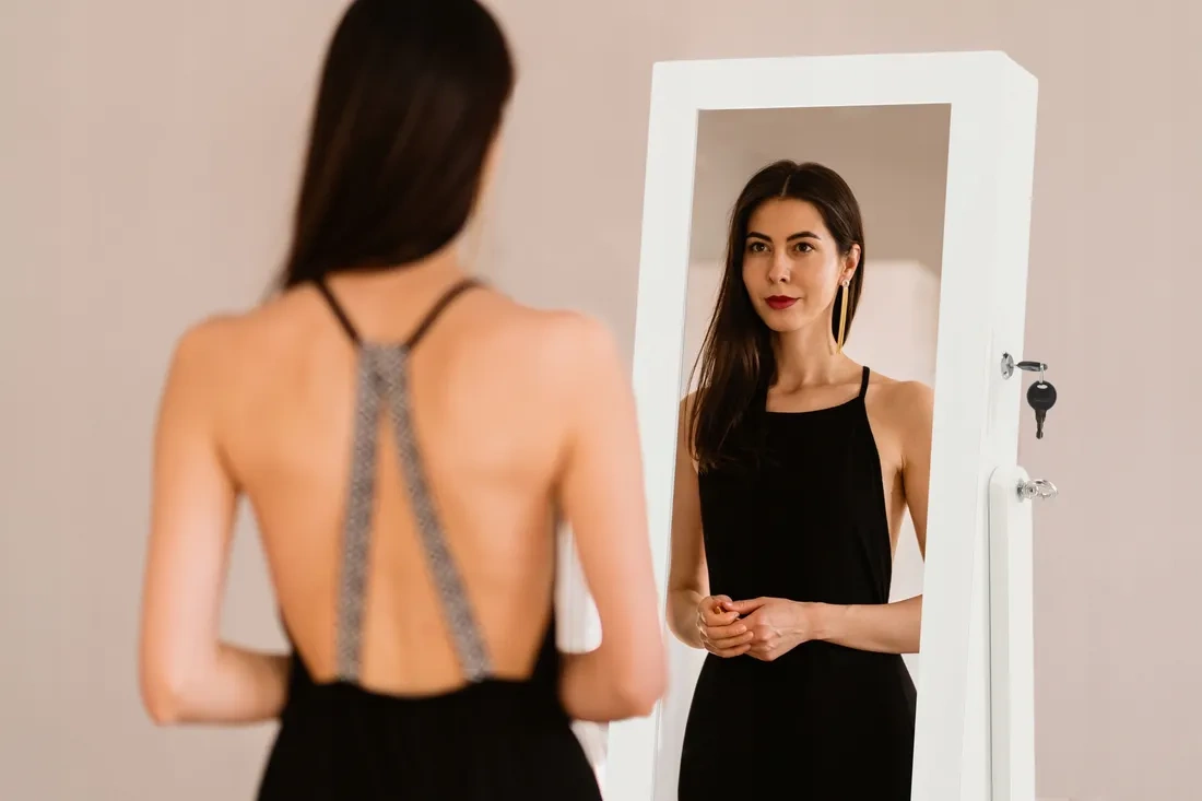 De grote passpiegel kan eenvoudig worden gekanteld met behulp van de zijdelingse pennen, zodat je altijd de perfecte hoek hebt bij het opmaken en passen van outfits.