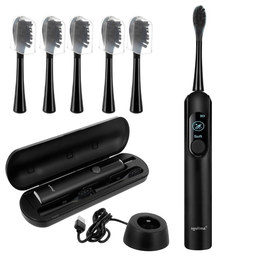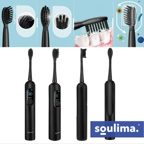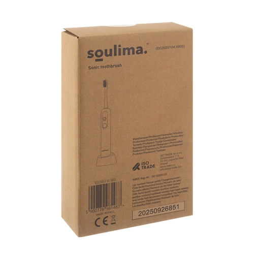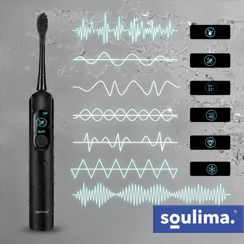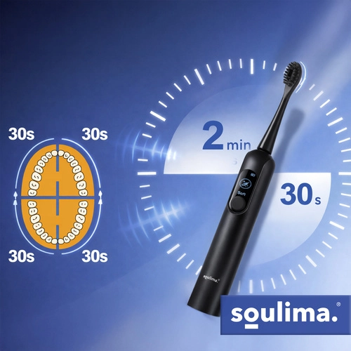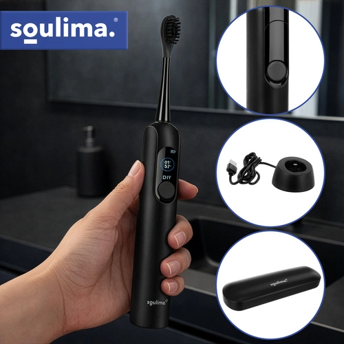 De SOULIMA X800 is een moderne sonische tandenborstel voor dagelijkse mondhygiëne die effectiever en zachter reinigt dan een handtandenborstel. Hoogfrequente vibraties helpen plak en bacteriën te verwijderen, zelfs van moeilijk bereikbare plekken, terwijl de slimme timer je begeleidt naar een gelijkmatige reiniging van de hele mondholte.