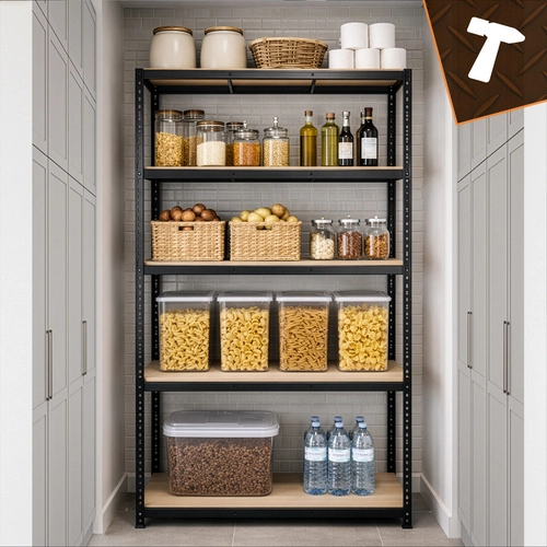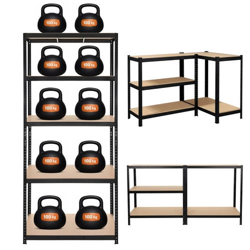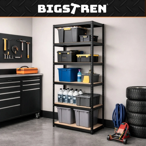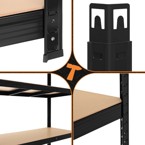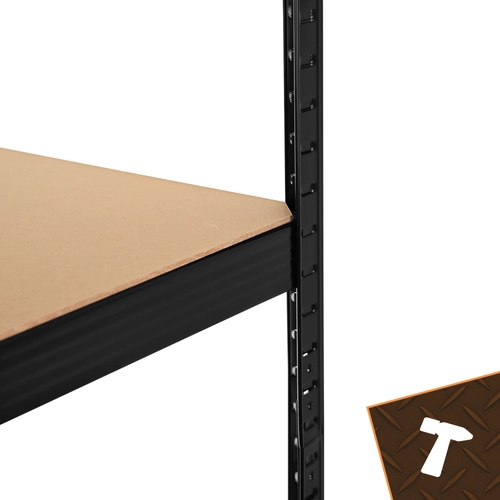 De robuuste metalen stelling van BIGSTREN biedt een extra hoog draagvermogen tot 200 kg per legbord en in totaal 1000 kg. Schroefloze montage is in een handomdraai gedaan, MDF legborden worden ondersteund door dubbele verstevigingen en poedergecoat staal zorgt voor corrosiebestendigheid. Ideaal voor garage, werkplaats, kelder en magazijn.