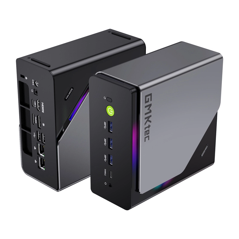 Voor professioneel gebruik is er de OCuLink‑connector (PCIe 4.0 x4) voor externe grafische kaarten of accelerators, een set video‑uitgangen HDMI 2.1 + DisplayPort 1.4 + USB4/USB‑C en een stille, dubbelzone koeloplossing met twee ventilatoren. Met vooraf geïnstalleerd Windows 11 Pro is hij direct klaar voor gebruik.