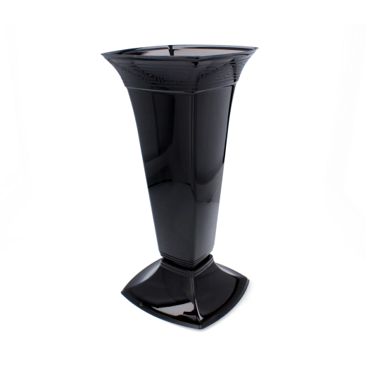 Elegante begraafplaatsvaas met een moderne uitstraling en een stabiele brede voet voor veilige plaatsing, zelfs bij wind. Gemaakt van duurzame kunststof die bestand is tegen vocht, UV-straling en mechanische schade. Het licht glanzende oppervlak benadrukt het waardige karakter van het arrangement en de zwarte kleur accentueert prachtig zowel snijbloemen als kunstbloemen.