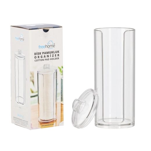 Berg cosmetische wattenschijfjes overzichtelijk en stijlvol op. Deze plastic doos is licht, duurzaam en onderhoudsarm. Het minimalistische design is gemakkelijk te combineren met andere badkameraccessoires.