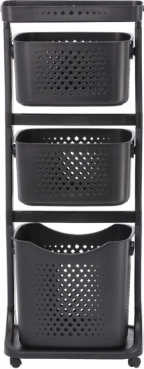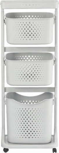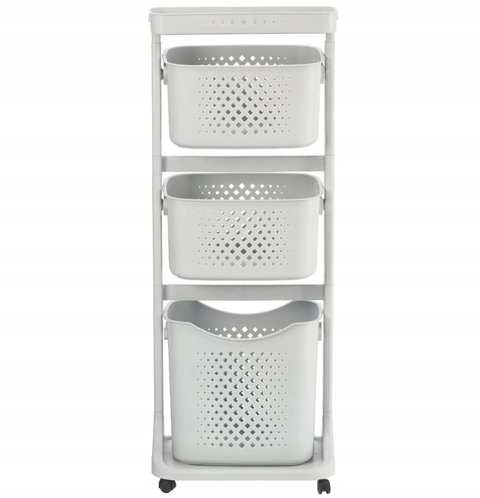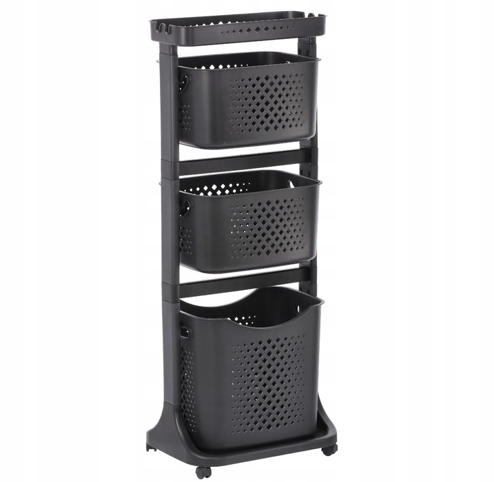 Praktische en stijlvolle hulp voor elk huishouden: een verrijdbaar rek met vier ruime manden, een bovenshelf en wieltjes voor eenvoudig verplaatsen. Dankzij de luchtige geperforeerde manden, de slanke verticale constructie en het universele design past het perfect in de badkamer, keuken, wasruimte, kinderkamer en op kantoor.