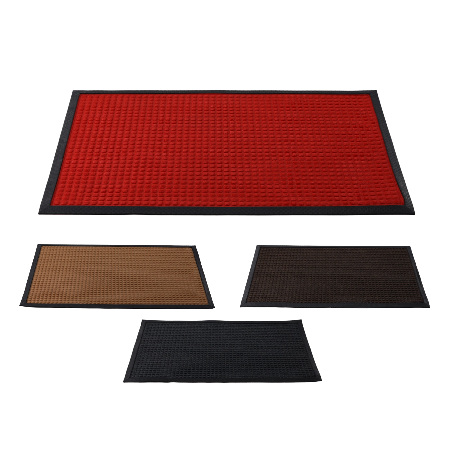 Dankzij de universele afmetingen van 60 × 90 cm past hij gemakkelijk voor de meeste deuren. De mat weerstaat regen, sneeuw en intensief lopen en het onderhoud is eenvoudig – stofzuigen, uitkloppen of afspoelen met water en een mild reinigingsmiddel volstaan. Verkrijgbaar in verschillende kleurvarianten, zodat je de look eenvoudig kunt afstemmen op het exterieur of interieur.