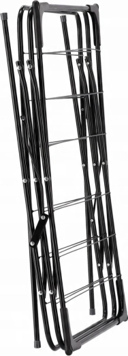 De X-constructie klapt snel uit en na gebruik vlak in, zodat je het droogrek eenvoudig achter een kast of onder het bed kunt opbergen.