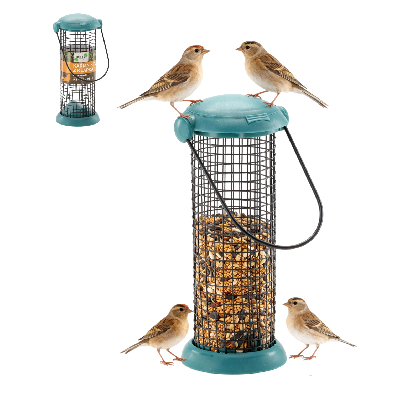 Hangende vogelvoeder met klep, metalen gaas, 21 cm