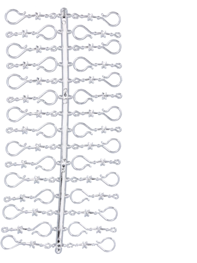 Praktische set van 30 zilveren haakjes voor het eenvoudig ophangen van kerstversieringen zoals ballen, slingers en andere decoraties. Dankzij de vorm zorgen ze voor snelle en veilige bevestiging aan takken, terwijl hun metallic zilveren glans de boom een elegante uitstraling geeft. Ze zijn licht, duurzaam en herbruikbaar, dus perfect voor jaarlijkse decoratie.