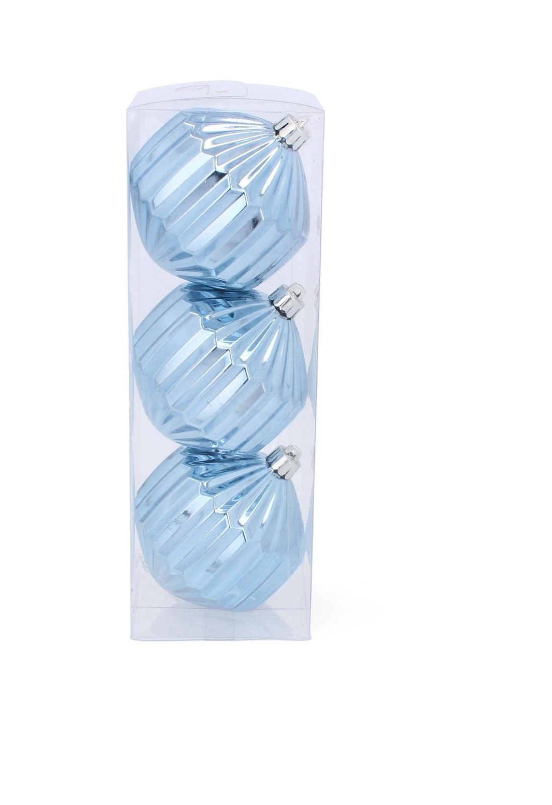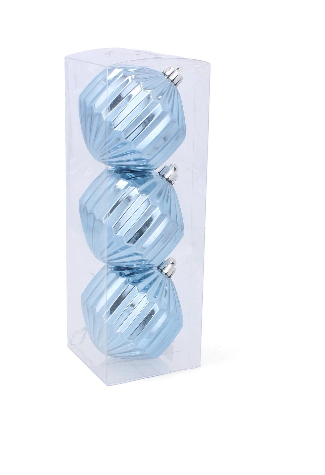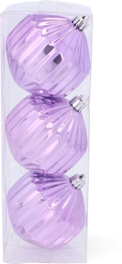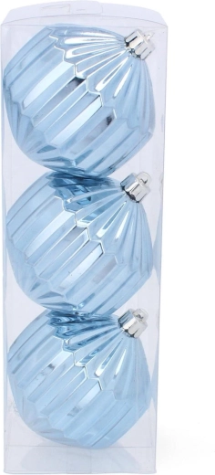 De set van drie ornamenten in een transparant doosje is klaar om direct op te hangen en na het seizoen veilig op te bergen.