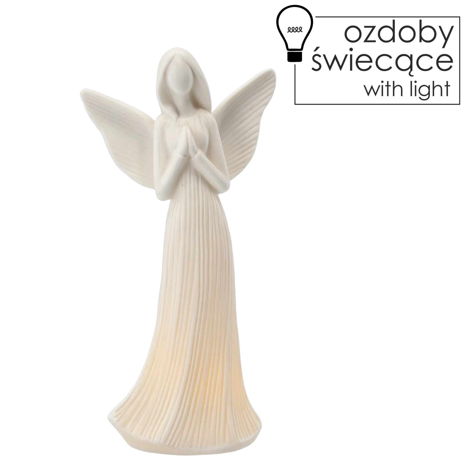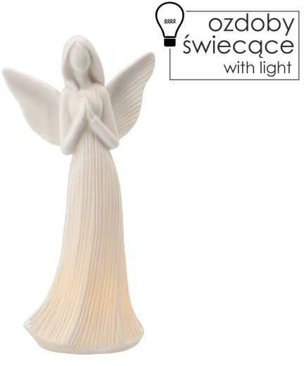 Deze engelendecoratie met LED-achtergrondverlichting valt op door het klassieke, tijdloze design en het matte oppervlak, dat in elk interieur elegant oogt. Dankzij de stabiele basis staat hij veilig op vlakke oppervlakken en de hoogte van 23,6 cm maakt hem tot een ideale aanvulling voor woonkamer, slaapkamer en hal.