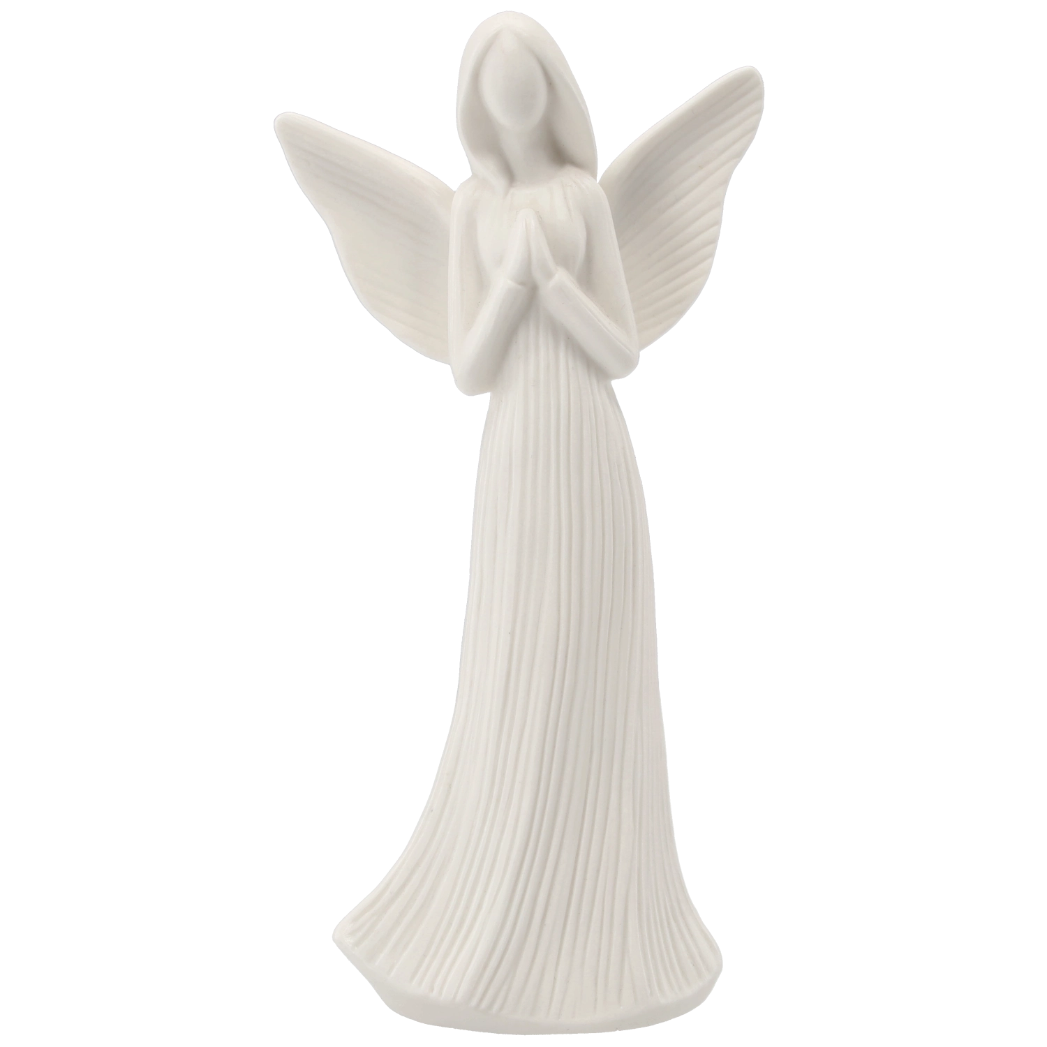 Het matte oppervlak, de elegant geplooide jurk en de subtiele vleugels ogen ingetogen, terwijl de stevige basis zorgt voor een veilige plaatsing op vlakke oppervlakken.