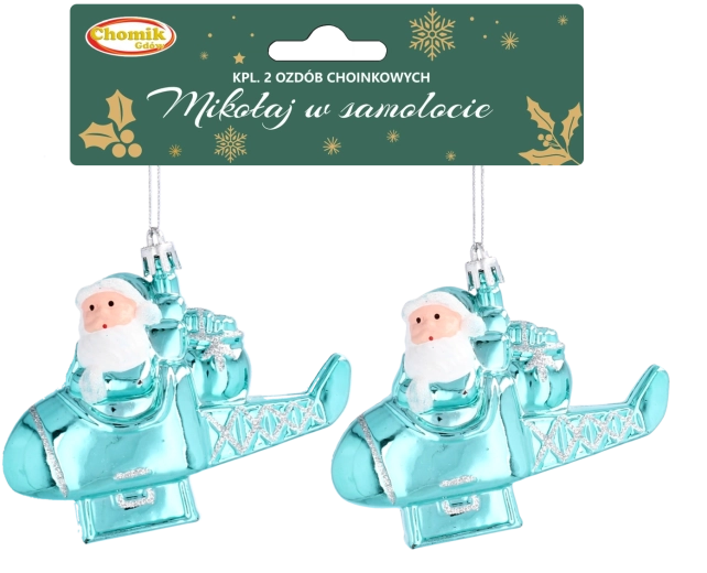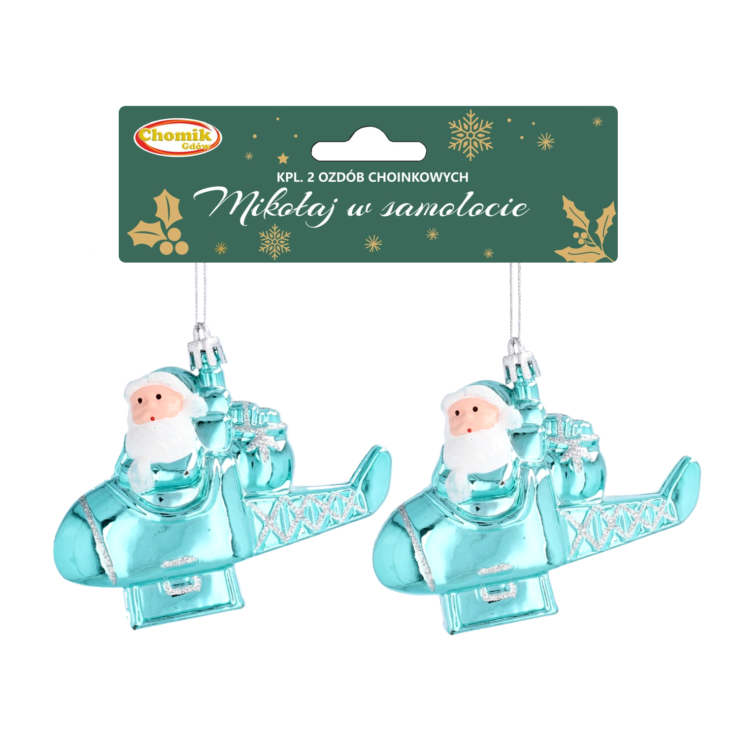Breng kerstsfeer in huis met een originele set van twee hangornamenten met het motief Santa in een vliegtuig. Zorgvuldige afwerking, duurzaam plastic en een meer kleurrijk feestelijk design passen zowel in traditionele als moderne interieurs. Ideaal voor in de kerstboom, maar ook als decoratie voor ramen, de haard of een feestelijk gedekte tafel.