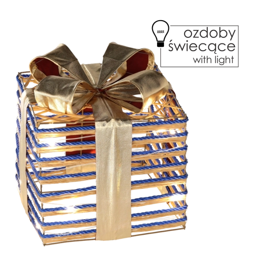 Deze stijlvolle kerstdecoratie in de vorm van een cadeau met blauwe strik zorgt voor een knus, warm licht dankzij de geïntegreerde LED-lampjes. Met een afmeting van 25 × 25 cm is het een opvallend, maar toch elegant element dat gemakkelijk te combineren is met andere decoraties.