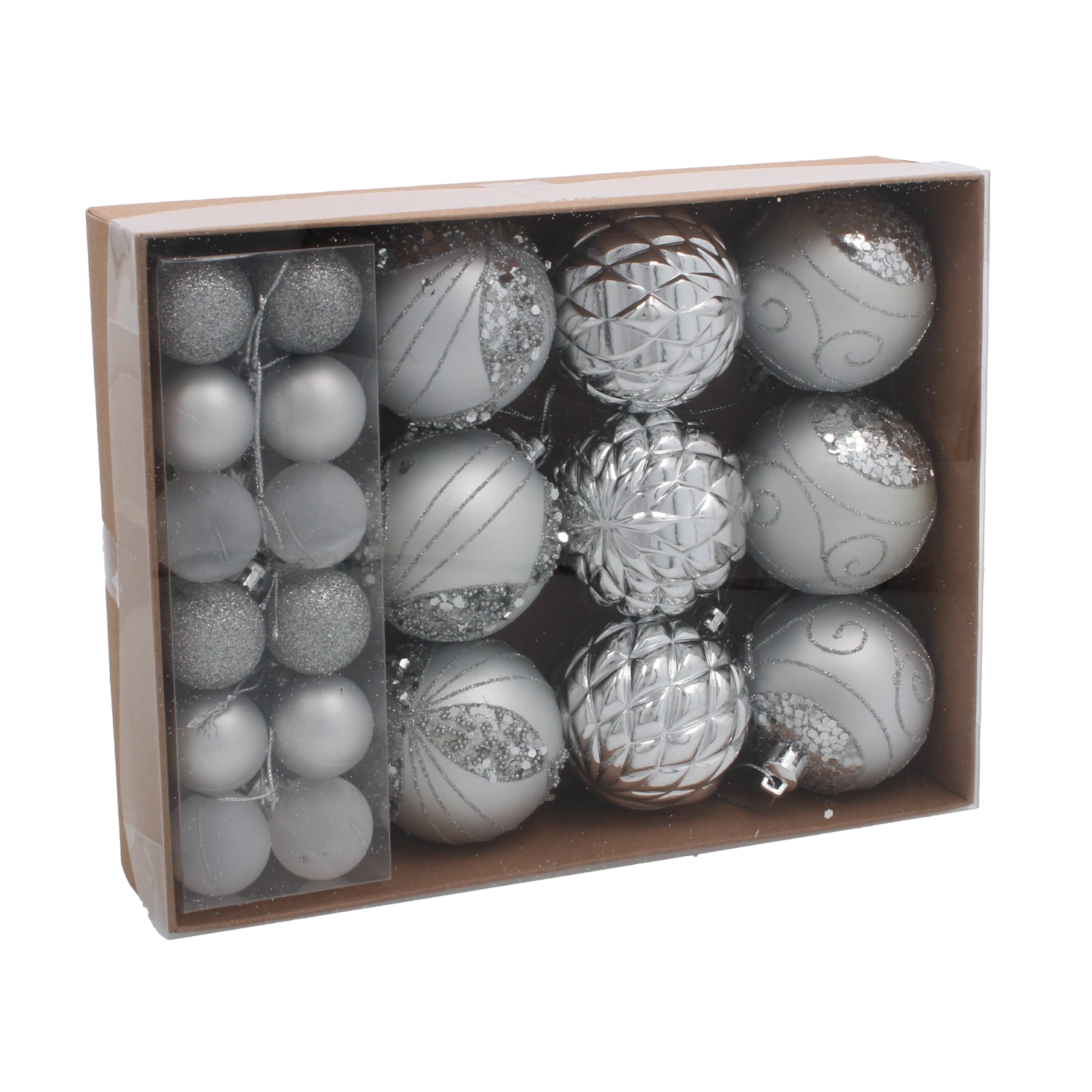 Creëer thuis een betoverende feestelijke sfeer met een set van 33 kerstballen in de klassieke combinatie van rood, zilver en goud. De ornamenten van duurzaam plastic zijn licht, veilig en geschikt voor huishoudens met kinderen. De verschillende oppervlakteafwerkingen – glad, glanzend, glitter en gedecoreerd – geven de boom diepte en schittering en zijn dankzij de meegeleverde oogjes eenvoudig op te hangen.