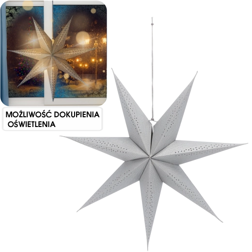 Creëer een gezellige sfeer tijdens Kerst en winteravonden met een stijlvolle papieren ster in grijs met een diameter van 60 cm. Dankzij het elegante design, het lichte materiaal en de opvouwbare constructie is hij ideaal voor ramen, etalages en moderne interieurs.