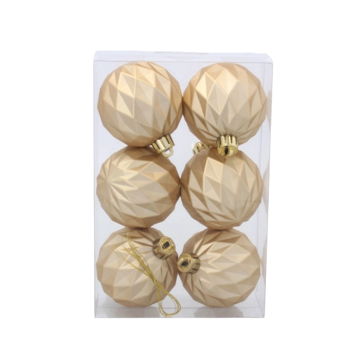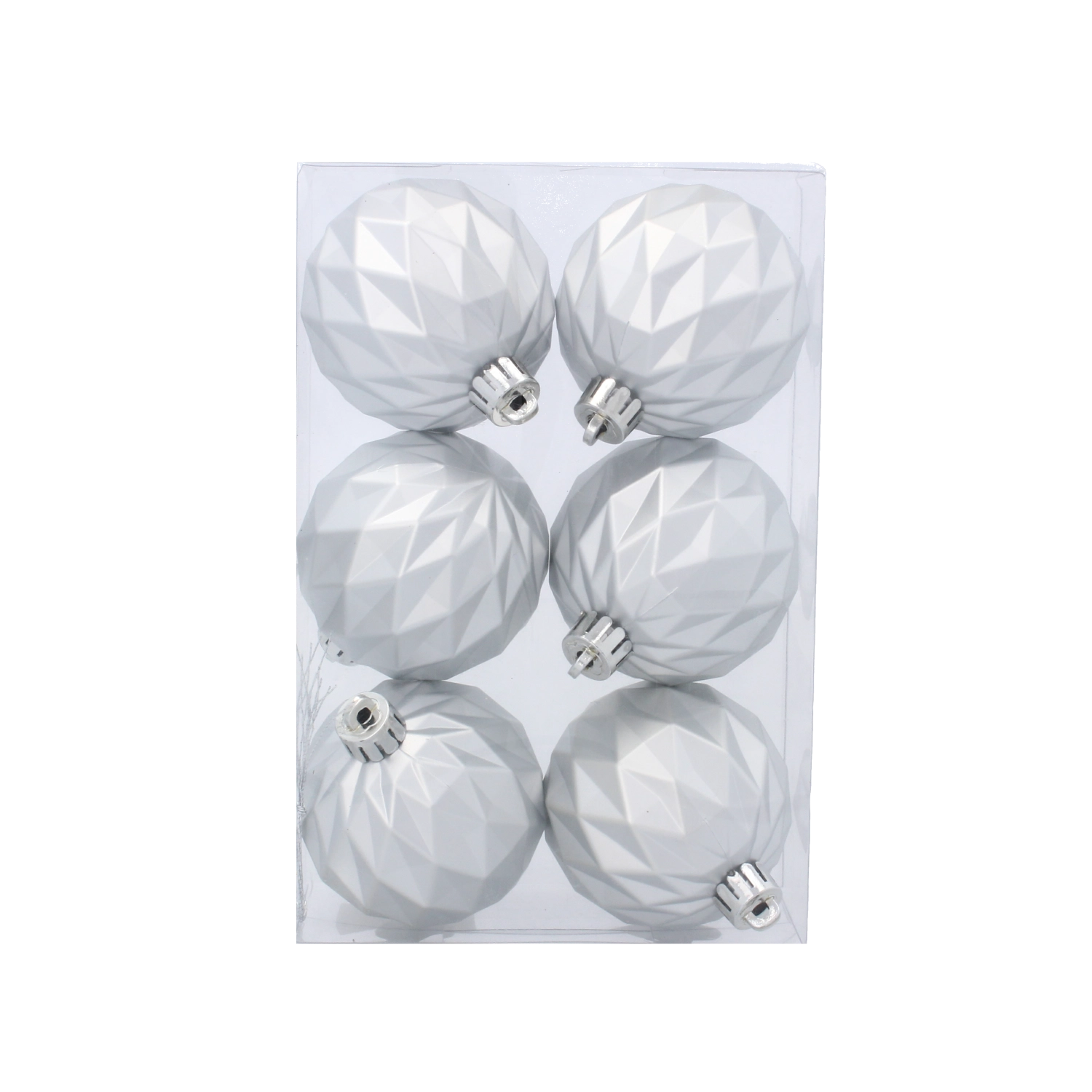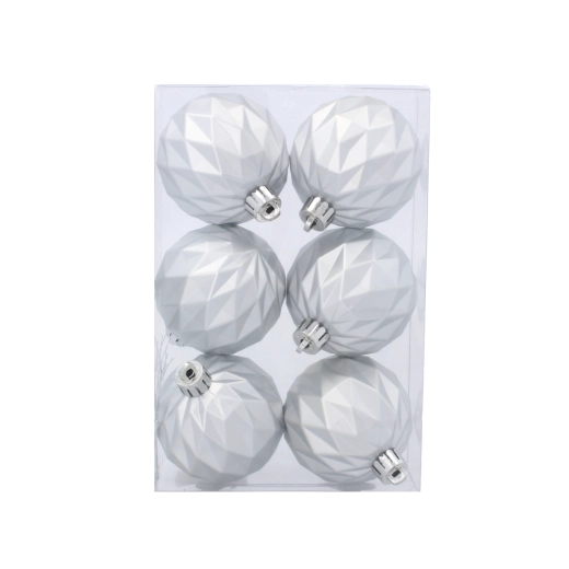 Deze set bevat 6 lichte en duurzame ornamenten met een diamantvormig geometrisch patroon dat subtiele reflecties creëert, zelfs in matte afwerking. Dankzij het niet-breekbare materiaal zijn ze ideaal voor huishoudens met kinderen en huisdieren, en perfect voor het versieren van kerstbomen, kransen en guirlandes.