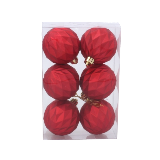 Geef je boom een moderne touch met een set van zes kerstballen met een diameter van 6 cm. Lichtgewicht, niet-breekbaar kunststof en mat geometrisch design zorgen voor een elegante uitstraling, eenvoudig ophangen en lange levensduur. De stijlvolle combinatie van rood, goud en zilver past perfect bij de meeste feestelijke decoraties.