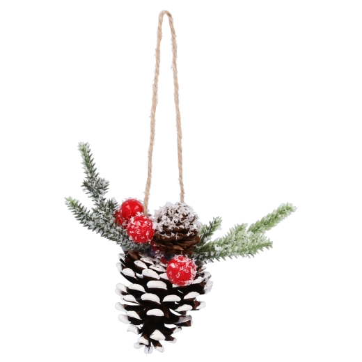 Een elegante kersthanger in de vorm van een dennenkegel brengt een betoverende feestelijke sfeer in huis. Ideaal om aan de deur te hangen, voor het raam of als tafeldecoratie. Gemaakt van kwaliteitsmaterialen voor een lange levensduur en veelzijdig gebruik in diverse interieurs.