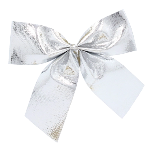 Zilveren strikken met een opvallende glans weerkaatsen het licht prachtig en accentueren elk cadeautje of takje.