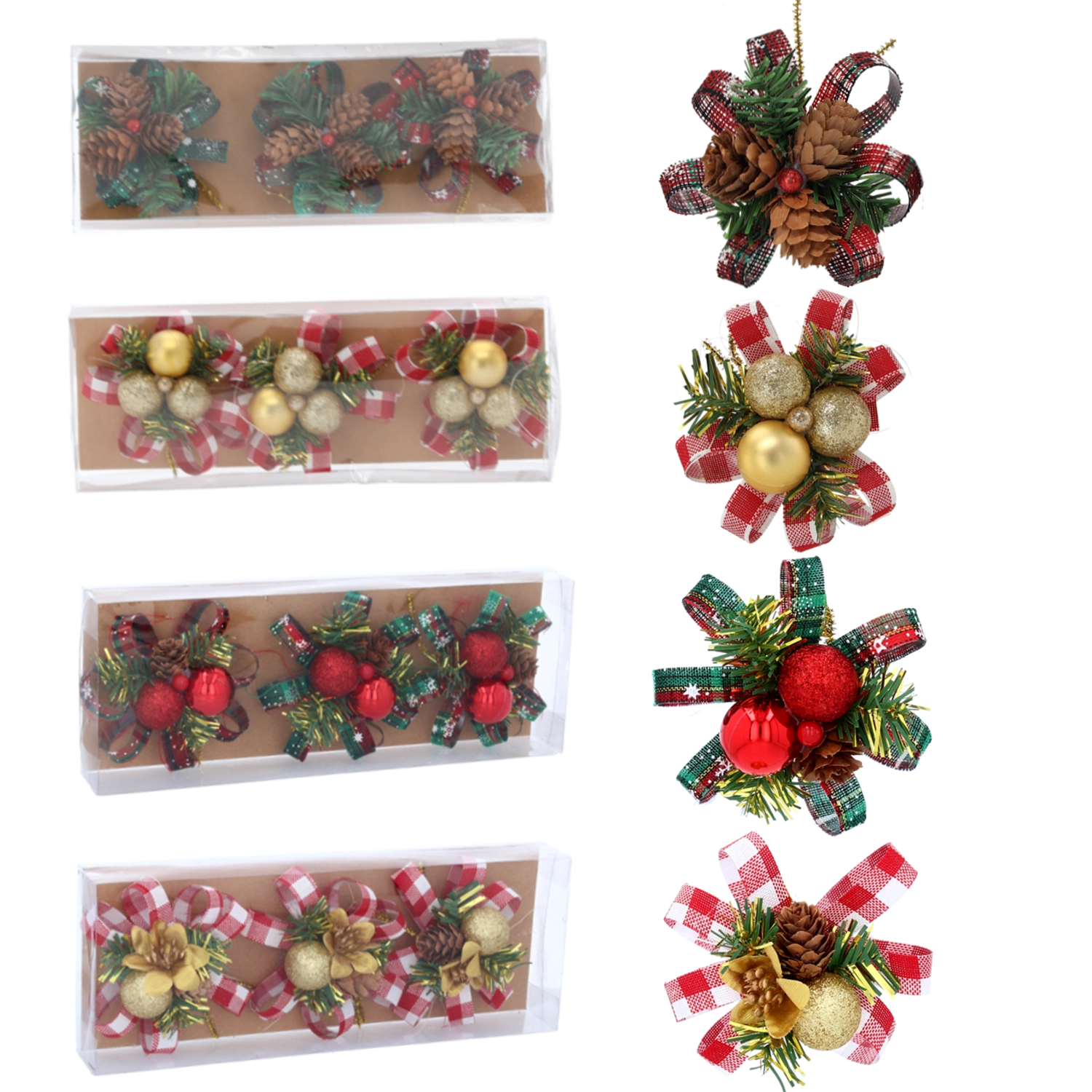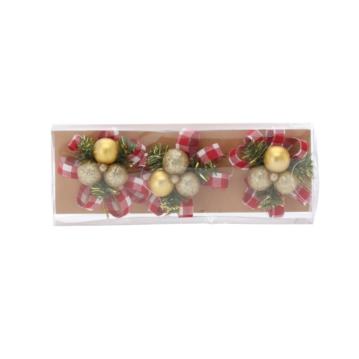 Deze elegante set van drie ornamenten combineert traditionele natuurlijke motieven met een modern design. Dankzij de zorgvuldige afwerking en het contrast tussen glinsterende en matte oppervlakken geven de decoraties je interieur een uitgesproken maar stijlvolle feestelijke uitstraling. Elk stuk is ontworpen om zowel afzonderlijk als in de set op te vallen.