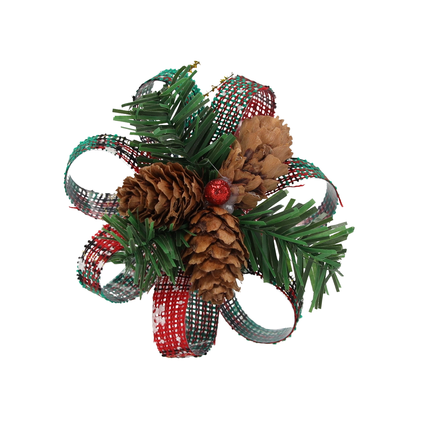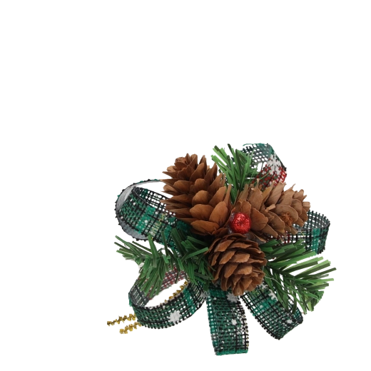 Realistische kunstnaalden en natuurlijke dennenappels geven de decoratie een authentieke, rustieke uitstraling en ondersteunen moeiteloos de winterse sfeer.