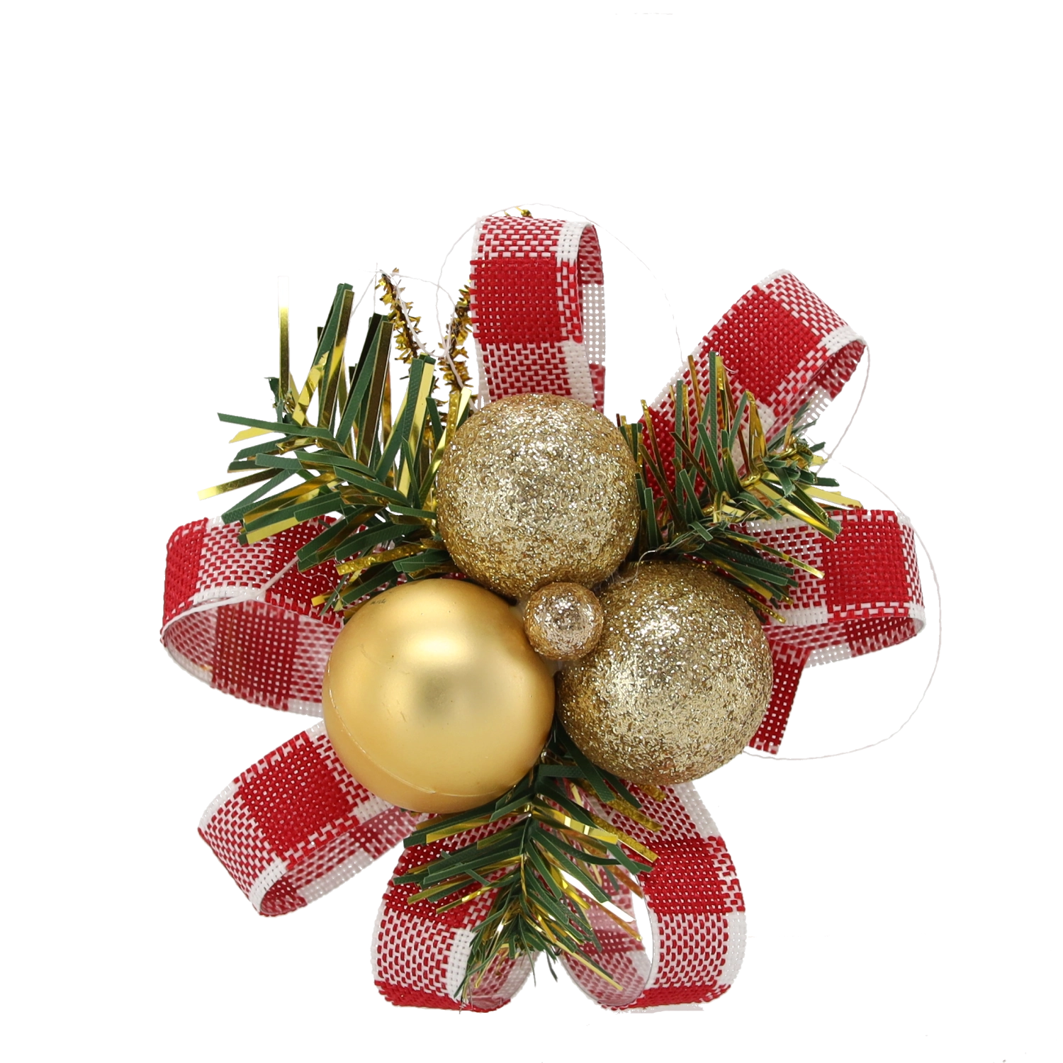 Glanzende en matte afwerkingen met een decoratief lint creëren een indrukwekkend contrast dat het licht prachtig weerkaatst op de boom of krans.