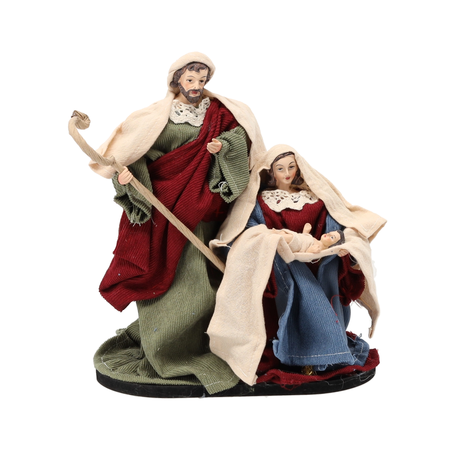 Het beeldje van de Heilige Familie is een tijdloze kerstdecoratie die direct een feestelijke sfeer creëert thuis, in de kerk of op school. De gedetailleerde uitwerking van gezichten en kledingplooien oogt realistisch en geeft de scène elegantie en diepte.
