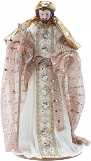 Deze representatieve set omvat de Heilige Familie, een engel, de Drie Koningen, een herder en dieren – alles in een harmonieuze wit-gouden stijl die past bij zowel moderne als klassieke interieurs. Handmatig afgewerkte details en subtiele metallic accenten geven de scène een uitzonderlijke uitstraling.