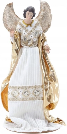 Witte gewaden en gouden, sprankelende details ogen feestelijk en tegelijkertijd tijdloos – ideaal voor een elegante kerstdecoratie.