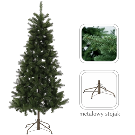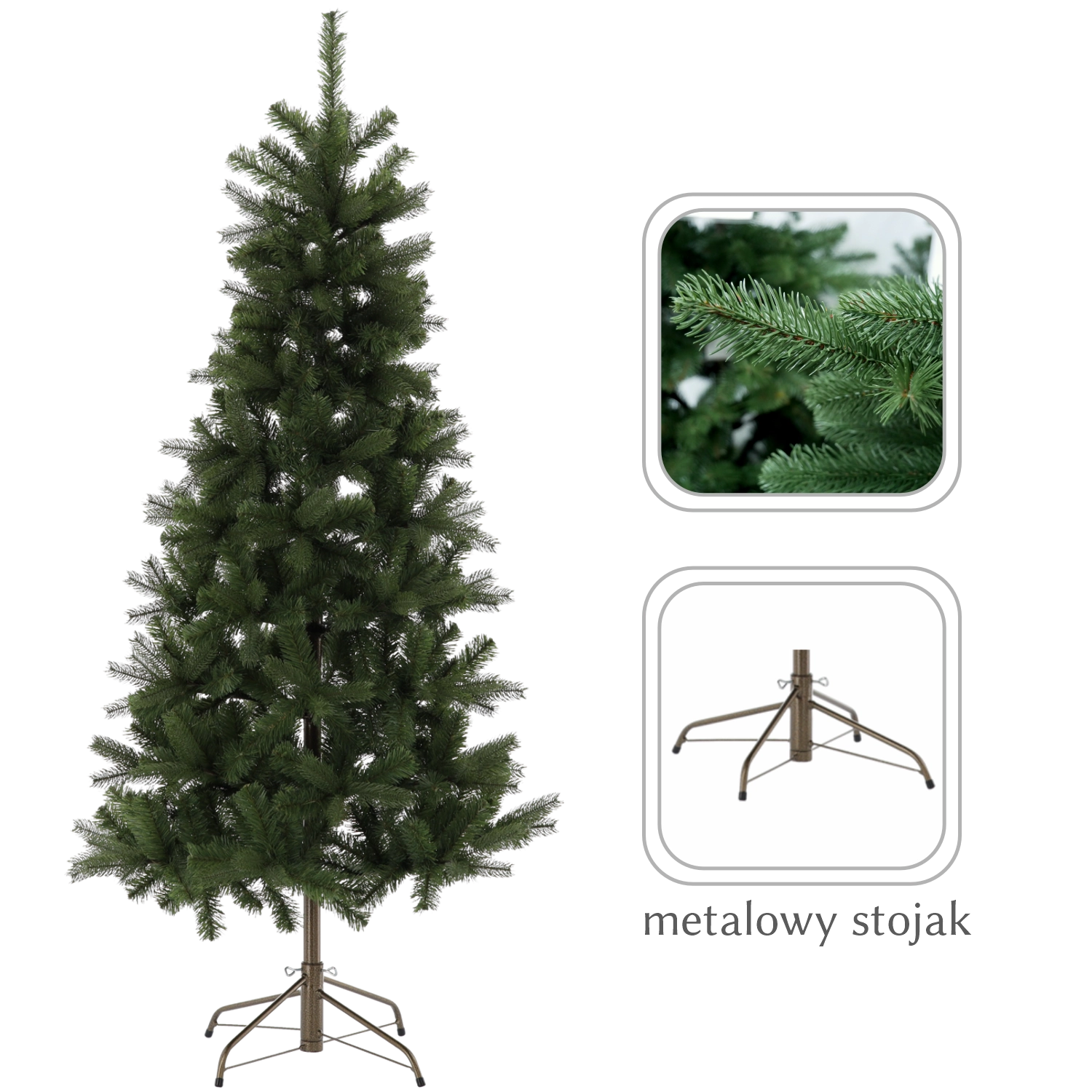 Elegante kunstkerstboom met een hoogte van 180 cm in een natuurlijke groene tint die een authentieke sfeer van een echte zilverspar in je interieur brengt. Dankzij de hoogwaardige PVC-naalden is de boom bestand tegen beschadiging en verkleuring, eenvoudig te monteren en geschikt voor herhaald gebruik. De stabiele metalen standaard zorgt voor een veilige plaatsing, ook bij rijke versiering.
