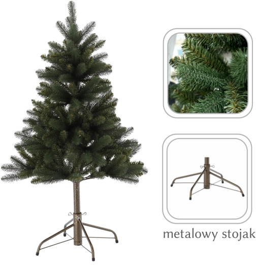 De synthetische kerstboom Aurora met een hoogte van 120 cm brengt de look van een klassieke spar in een praktisch jasje. De dicht geplaatste takken bootsen natuurgetrouw echte naalden na, waardoor de boom er vol uitziet, zelfs zonder overdadige versiering. Dankzij het hoogwaardige PVC-materiaal is hij duurzaam en herbruikbaar, wat tijd, geld en het milieu bespaart.