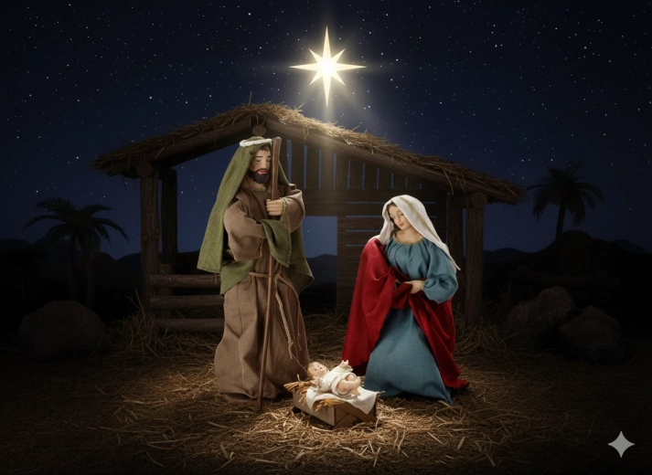 De stijlvolle set van drie beelden van de Heilige Familie is gemaakt van duurzaam kunststof en hout en de kleding is vervaardigd uit natuurlijke stoffen. Hierdoor ogen ze uitzonderlijk realistisch en elegant, steken ze boven gewone kerstversieringen uit en passen ze moeiteloos in zowel klassieke als moderne interieurs.