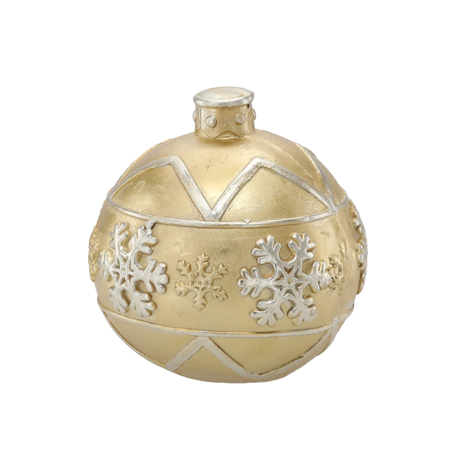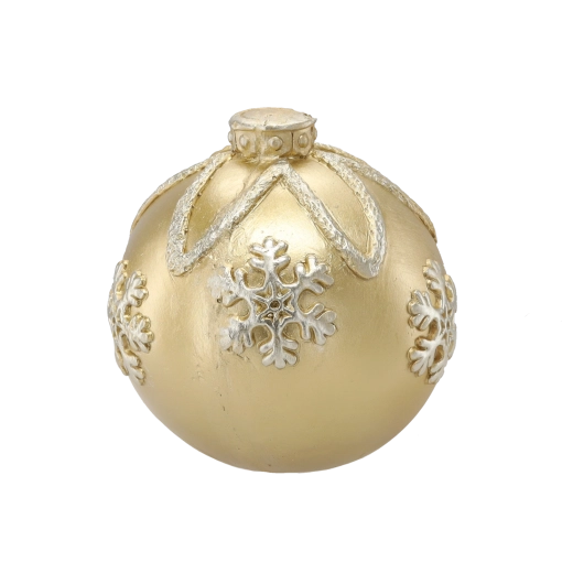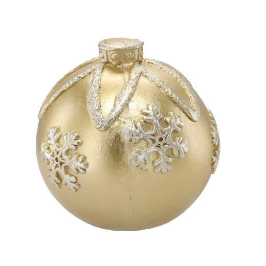 Elegante gouden kerstbal met een diameter van 21,5 cm die uw huis een feestelijke sfeer geeft. Het glanzende oppervlak en de reliëfpatronen van sneeuwvlokken maken er een opvallende decoratie van voor grotere kerstbomen en voor losse arrangementen. Gemaakt van hoogwaardig, duurzaam materiaal voor een lange levensduur.