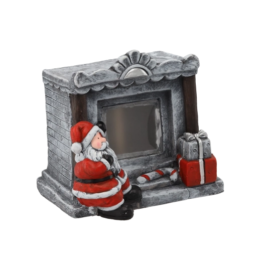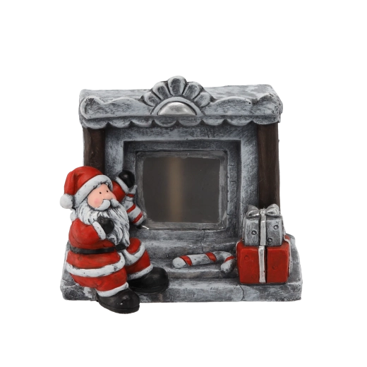 Deze decoratieve figuur in de vorm van een stenen haard met de Kerstman brengt een warme, feestelijke sfeer in je interieur. Het geïntegreerde LED-licht verlicht zachtjes het “vuur” en zorgt voor een knus, warm licht – ideaal op een plank, console of kersttafel.