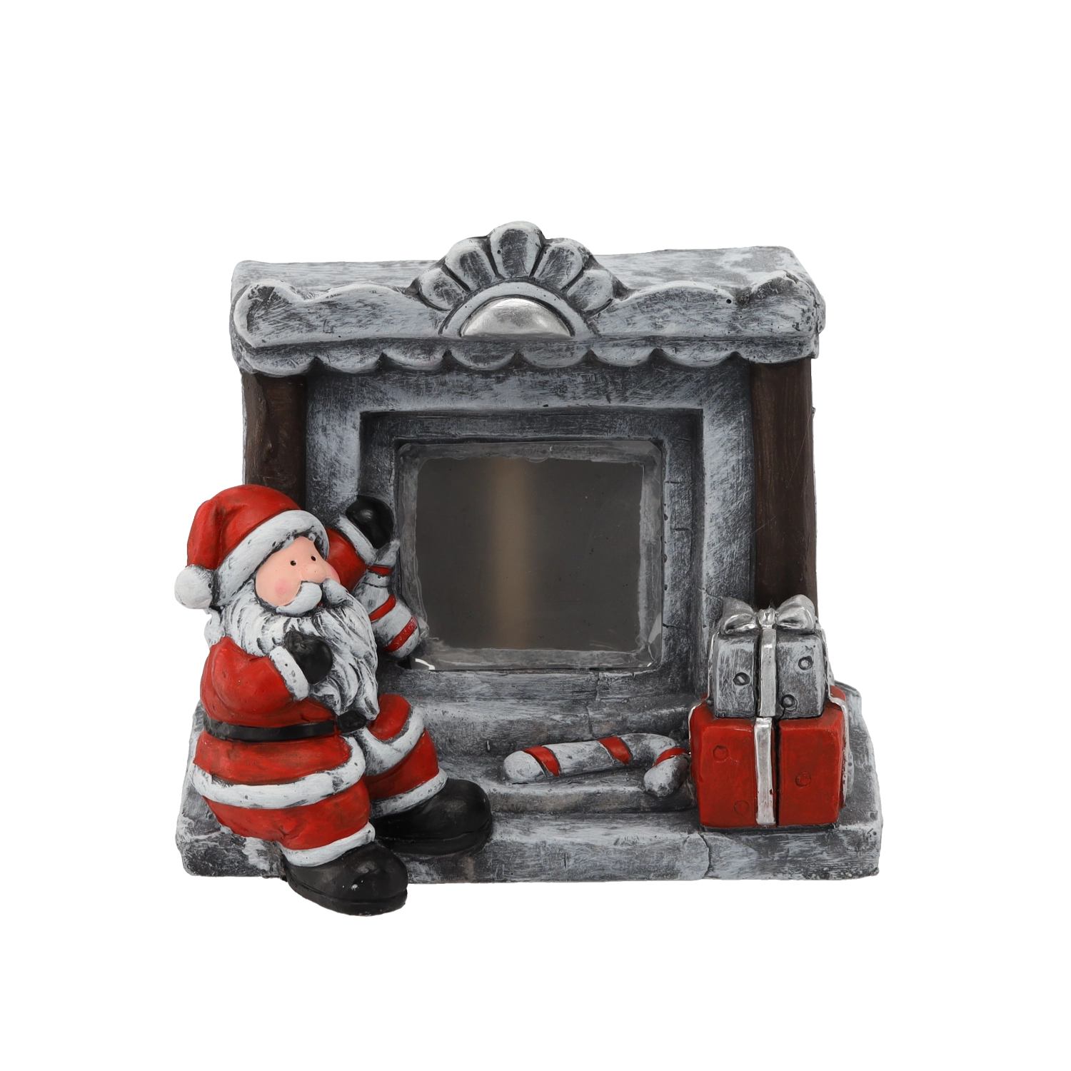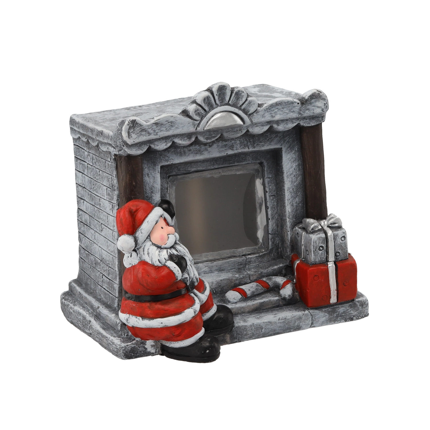De steeneffect-haard, de KERSTMAN, cadeaus en zuurstokjes zijn zorgvuldig gemodelleerd en beschilderd zodat ze op tafel of op een plank prachtig opvallen.