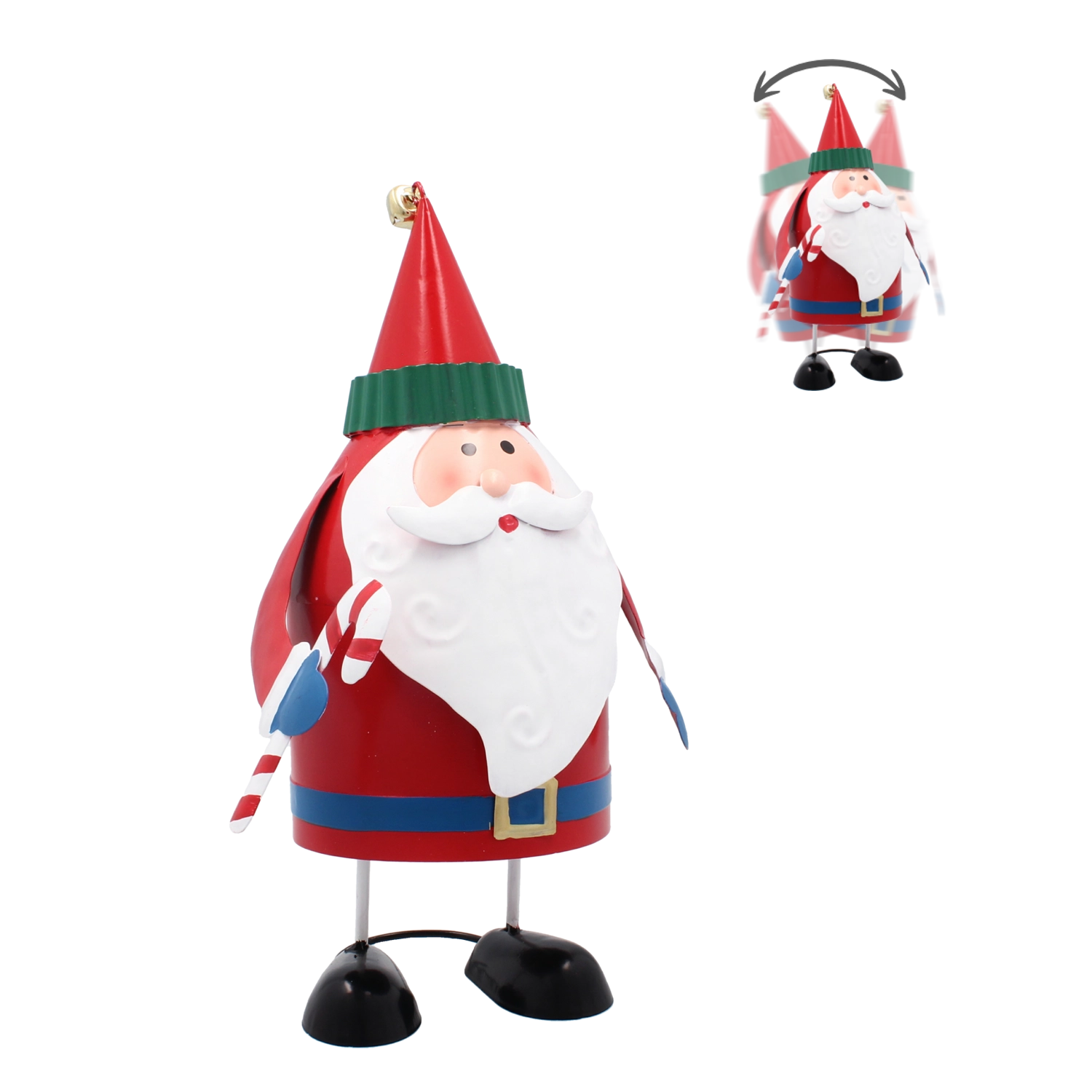 Creëer een knusse, feestelijke sfeer met het metalen Kerstman-figuurtje, dat opvalt door zijn speelse uitstraling en precieze details. Dankzij de compacte afmetingen past het gemakkelijk in zowel klassieke als moderne interieurs.