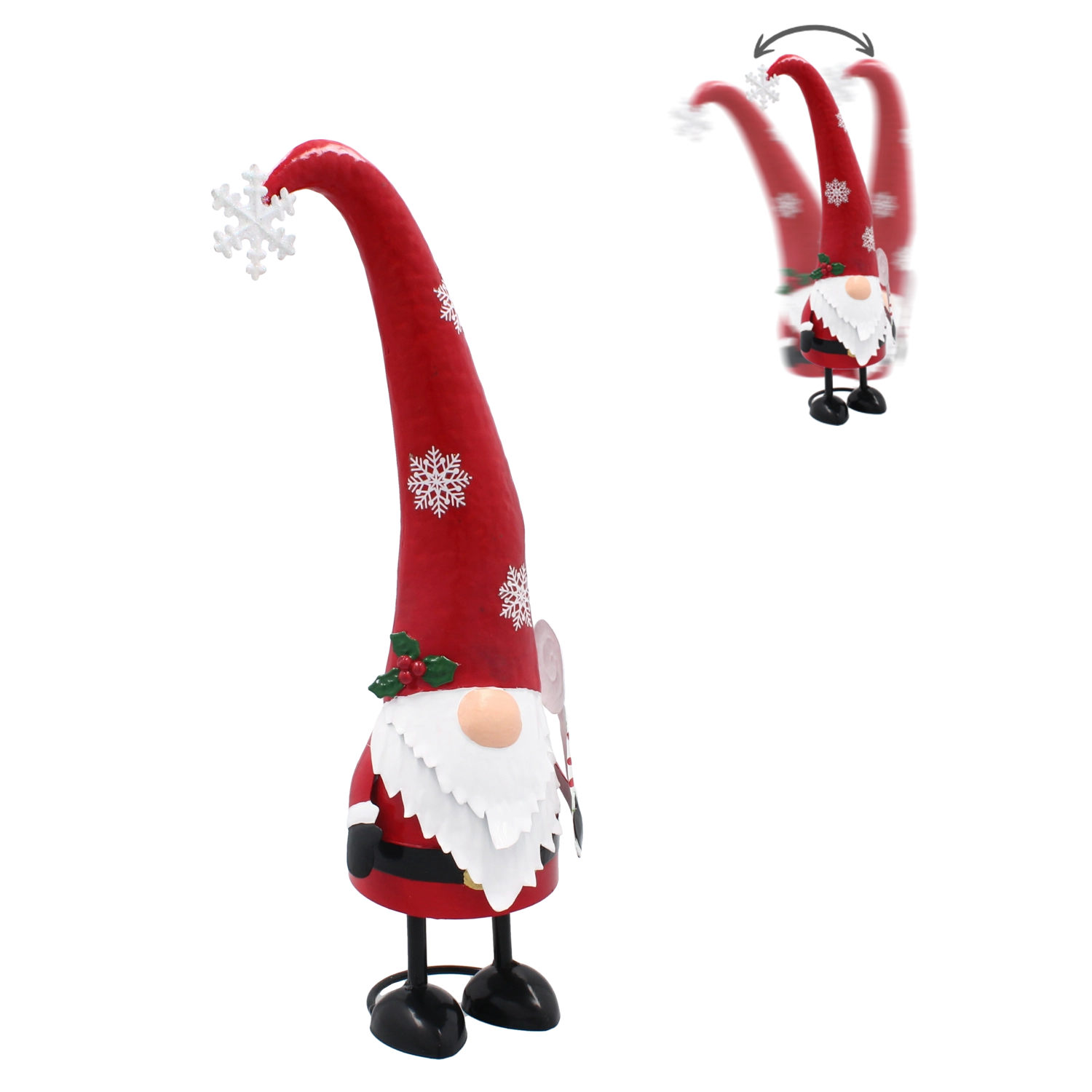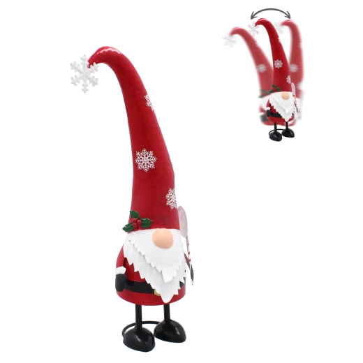 Elegante metalen kerstkabouter met lange muts die uw huis doet stralen en er kerstmagie in brengt. Dankzij de hoogwaardige afwerking, stabiele metalen constructie en stijlvolle combinatie van rood en zilver wordt het een opvallende feestelijke decoratie op een plank, vensterbank of tafel.